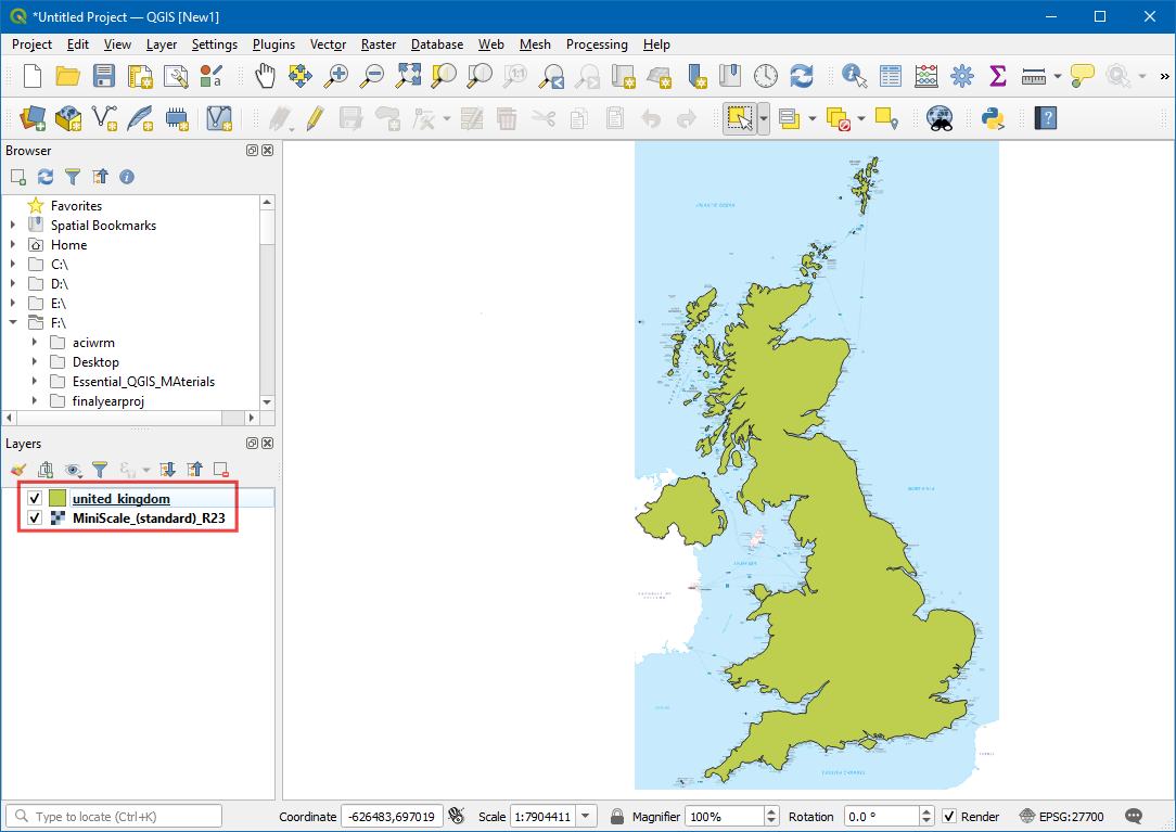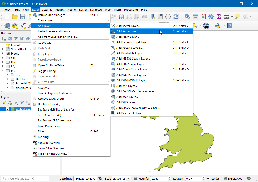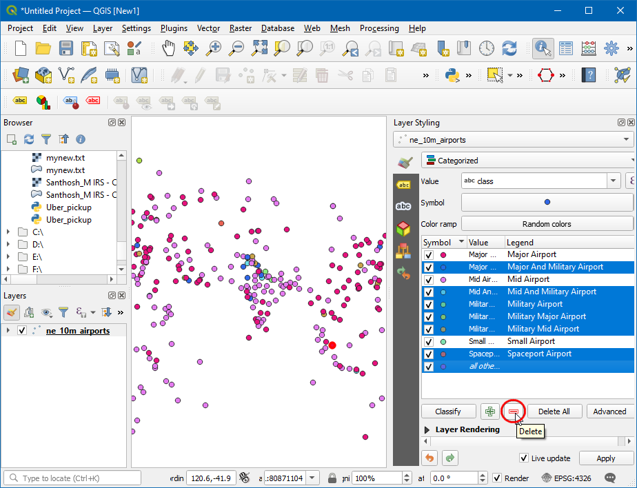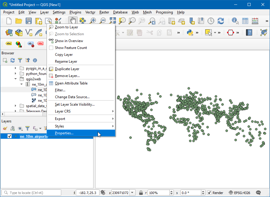 Вы увидите, что новый точечный слой под названием загружен в QGIS