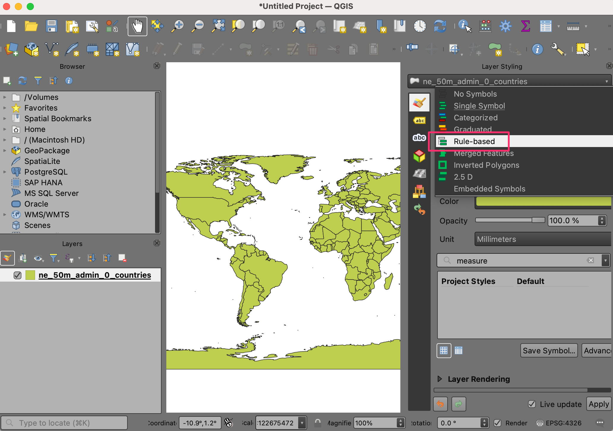 Now that we have lengths of individual railroad line segments, we can add them up to find the total length of railroads. But as the problem statement demands we need total railroad length in the United States, we must use only the segments contained within USA. We can use the country code value in the sov_a3 column to filter the layer. Right-click the layer and select Filter.