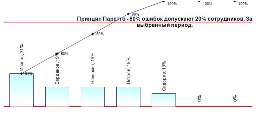 3.Используя метод KIZEN диаграмму Парето мы анализируем комплектовщиков, которые больше всех допускают ошибок