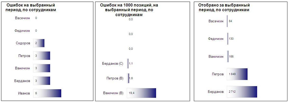 Используя первые 3 анализа мы получаем возможность, оценить качество работы сотрудника его квалификацию, а так же выявить сотрудника с которым необходимо провести дополнительное обучение или повысить контроль над ним, а в случаях если сотрудник не обучаем, то всегда можно применить «удар по карману».